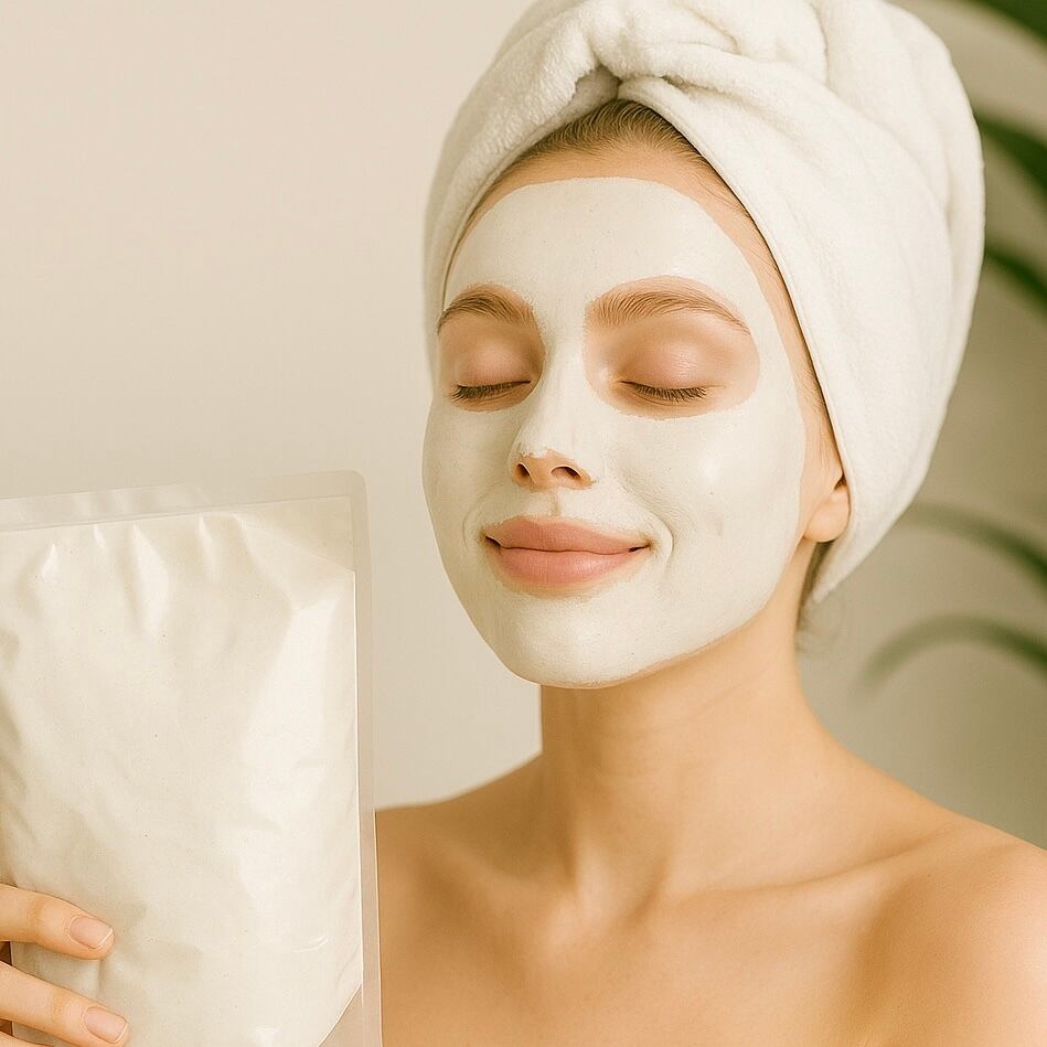 1.手の平に約3cmくらい(約3g)をとり、顔全体にのばします。